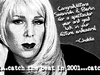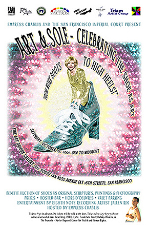 | My very first friend in San Francisco was a man named, David Lassman. Over the years we've been roommates on more than one occasion. We've supported each other and our various love interests, and we've helped each other actualize our dreams. One such dream for David, A.K.A. Chablis, was to become Empress of San Francisco and in 2001 Chablis did just that! So over the years I whipped up different designs for events, her campaign, and ultimately her reign. |