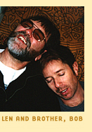 We started spending time together, but true to form, I'm a "multi-tasker" so I was juggling two other romantic interests at the same time. Len caught my attention, though, since he, relatively, didn't mind. Over the next few months, I narrowed the "picking's" and actually decided to seriously date one of the other guys. But within a couple of weeks I realized I had made the wrong choice. I could not deny the many ways Len and I connected and complimented each other, so I humbly "begged" him to give me another chance. He was warmly forgiving and still has that quality today. For the next several months we were still in the "getting to know each other" mode, and we coined the phrase "romantic friends" for each other, since most labels (boyfriend, steady, etc...) didn't quite fit. After about a year, though, we were quite sure that the depth of our relationship was going to be long-lasting, if not lifelong. Within two or three years Leonard and I racked up some great memories that solidified our relationship. One Christmas we rented a cabin by Yosemite and spent the week tromping Len has often been my "roadie" on concert tours to Miami, Key West, New Orleans, New York, Phoenix, the Grand Canyon and Washington DC. In addition, he has always been an avid supporter of my music and he proved it right off the bat by helping me get my first CD, The Sacred and the Queer, off the ground. We've had the fun of going to Europe a few of times. In May of 2001, I performed throughout Britain and Len came over the last two weeks. We stayed with good friends in London, but still did not see the whole city. In '98, we took his mother for her 80th birthday to a couple of, Oh! little towns she'd never travel to: Paris and London. Speaking of his family, I not only was welcomed into Leo's In 1997, we were lucky enough to purchase a 110 year old Victorian in San Francisco, mainly because Leonard had some previous real-estate investments. Am I a lucky guy or what? We were able to land the house right before the housing market got really insane. The |